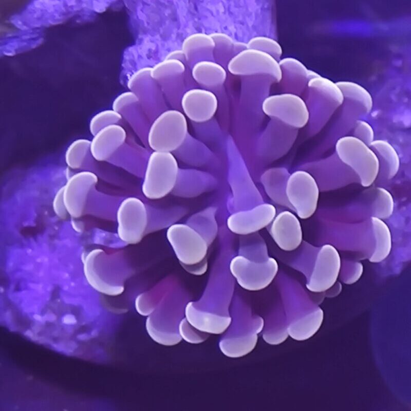 Einfache und schnell wachsende LPS – Koralle. Es stehen mehrere Ableger zur Verfügung. Die Tiere unterscheiden sich nur leicht in Form und Größe. Sie erhalten einen Ableger ähnlich dem abgebildeten Tier mit 1 – 2 Köpfen.